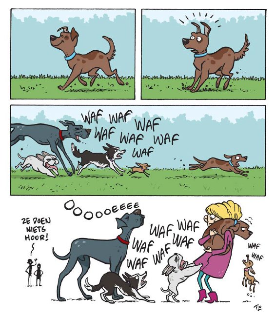 Voor een eenling is het tegenkomen van een groep vaak beangstigend, zeker als die groep als één man op hem afkomt. Honden in een groep voelen zich erg sterk en kunnen zich onverwachts heel anders opstellen dan wanneer zij alleen zijn.