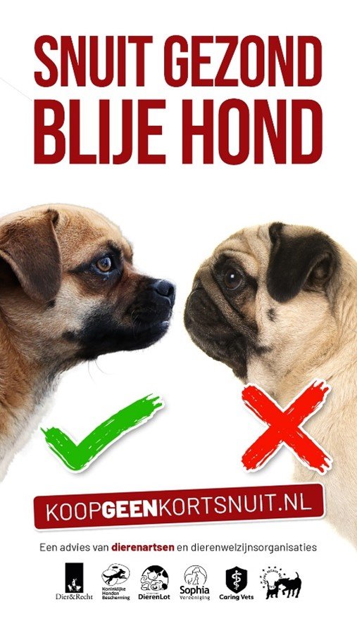 Servé Smeets van dierenartsenvereniging Caring Vets: “De Raad van Beheer faciliteert, promoot en beloont nog steeds het illegaal fokken van kortsnuitige honden. We roepen mensen op om altijd te kiezen voor een hond met een gezonde snuit. Snuit gezond, blije hond!”