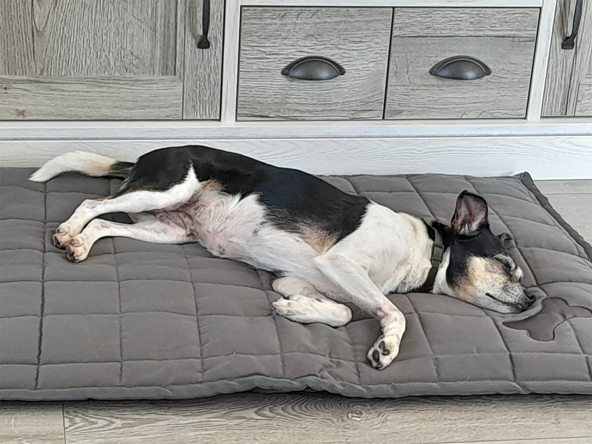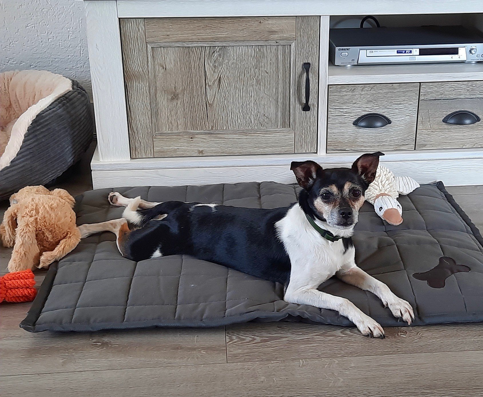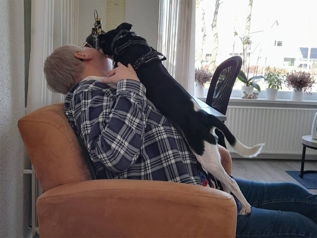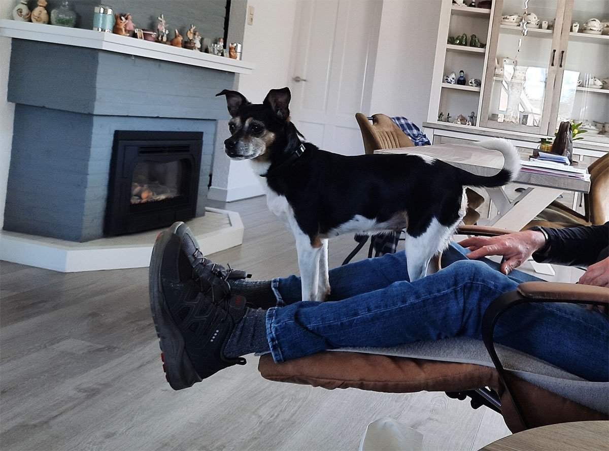 Shanti bleek een trouwe knuffelkont, slim, leergierig en altijd in voor een avontuur. Snuffelspelletjes, clickertraining, wandelen of gewoon lekker bij je op de bank — ze genoot bij ons van alles met volle teugen. Ondanks haar hartruis (waarvoor ze medicatie krijgt), stond ze elke dag kwispelend klaar. En toch lukte het maar niet om een fijn nieuw thuis voor haar te vinden.