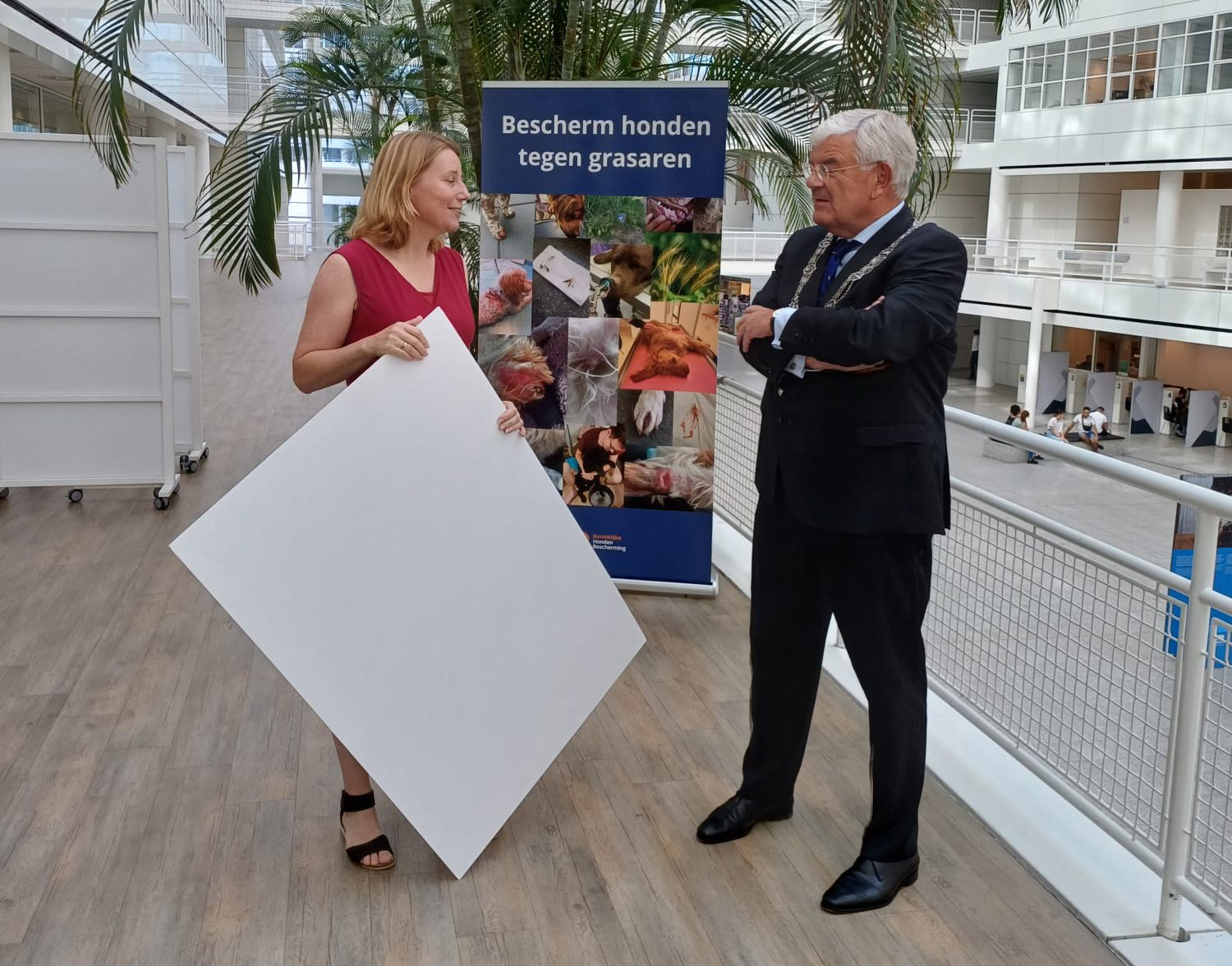 Burgemeester Jan van Zanen heeft de ruim 55.000 handtekeningen donderdag in ontvangst genomen. "De grasaren veroorzaken een probleem dat we samen met gemeentes en hondeneigenaren moeten aanpakken", aldus Groenendijk. Burgemeester Van Zanen toonde zich zeer geïnteresseerd en beloofde het onderwerp te agenderen op de raadsvergadering die na de overhandiging plaatsvond.