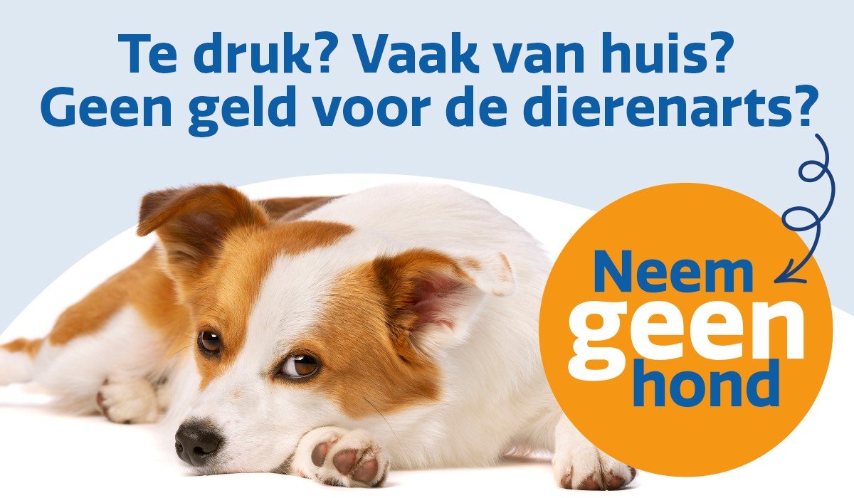 Honden bieden kameraadschap en hebben een positieve invloed op de gezondheid en het sociale leven van hun eigenaar. Maar een hond vraagt ook veel: dagelijks minstens twee uur aan aandacht en beweging, en maandelijks zeker 100 euro aan voeding en verzorging. Die kosten kunnen ook nog eens snel oplopen als de hond gezondheidsproblemen krijgt. Medische behandelingen kunnen al gauw in de duizenden euro’s lopen. “We roepen mensen daarom op om zich financieel goed voor te bereiden,” aldus Daphne Groenendijk. “Zo voorkom je hartverscheurende keuzes wanneer er iets misgaat. Een huisdierenverzekering kan helpen, maar ook een goedgevuld spaarpotje is verstandig.”