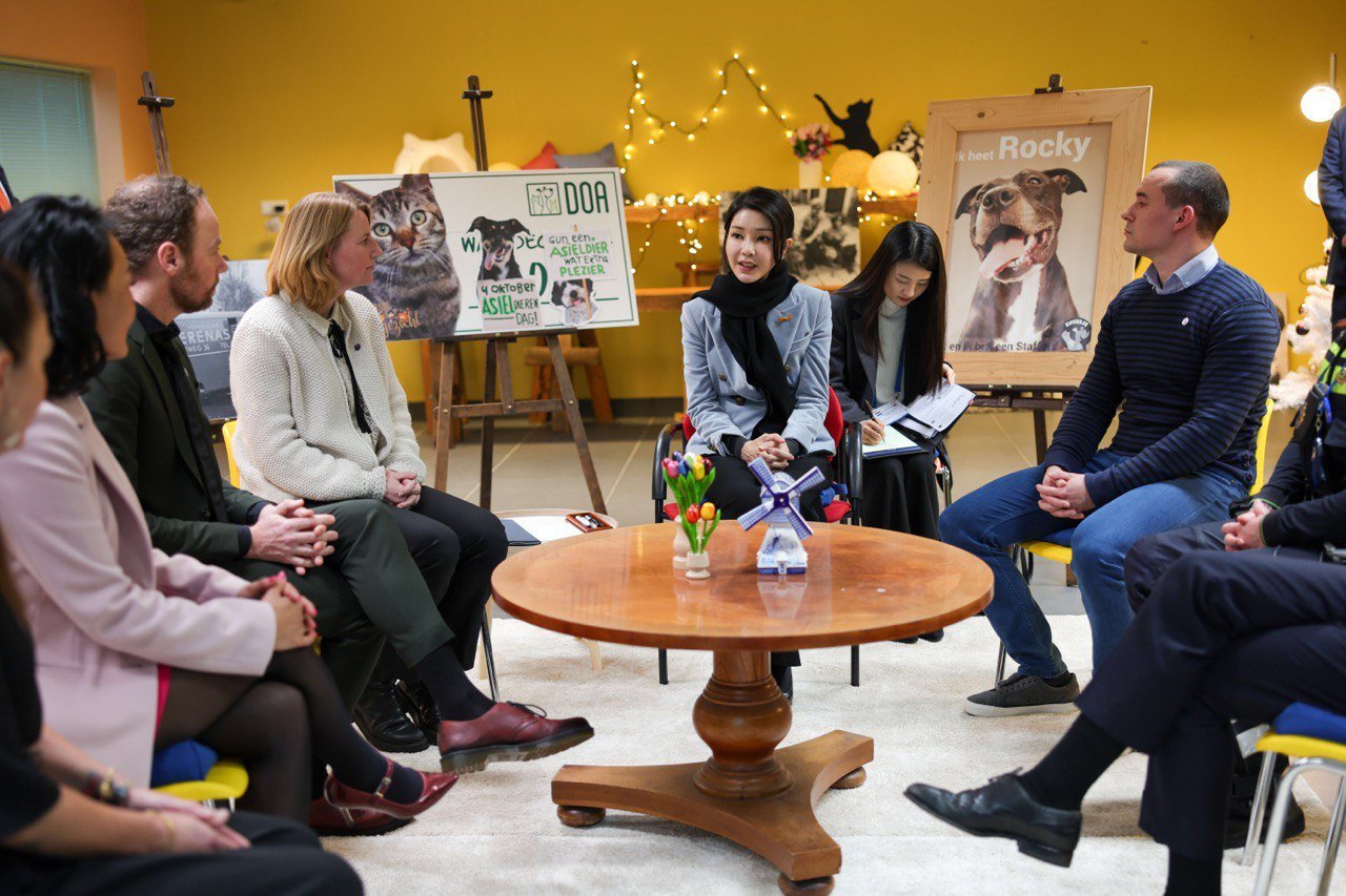 Tijdens het officiële staatbezoek van het presidentiële paar van Zuid-Korea wilde de presidentsvrouw meer weten over hondenwelzijn in Nederland. Kim Keon-hee – zelf groot liefhebber van honden – was onder de indruk van hoe de Koninklijke Hondenbescherming de afgelopen 111 jaar heeft bijgedragen aan de transitie van werkhond onder erbarmelijke omstandigheden naar huishond, als volwaardig lid van de familie.