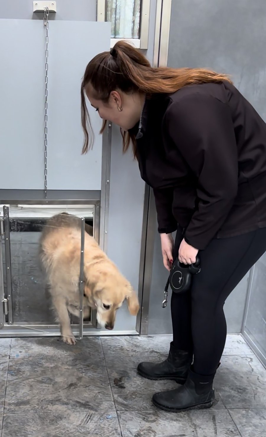 De verblijven hebben klapdeurtjes, die de honden (ook de kleintjes!) eenvoudig zelf open kunnen maken.