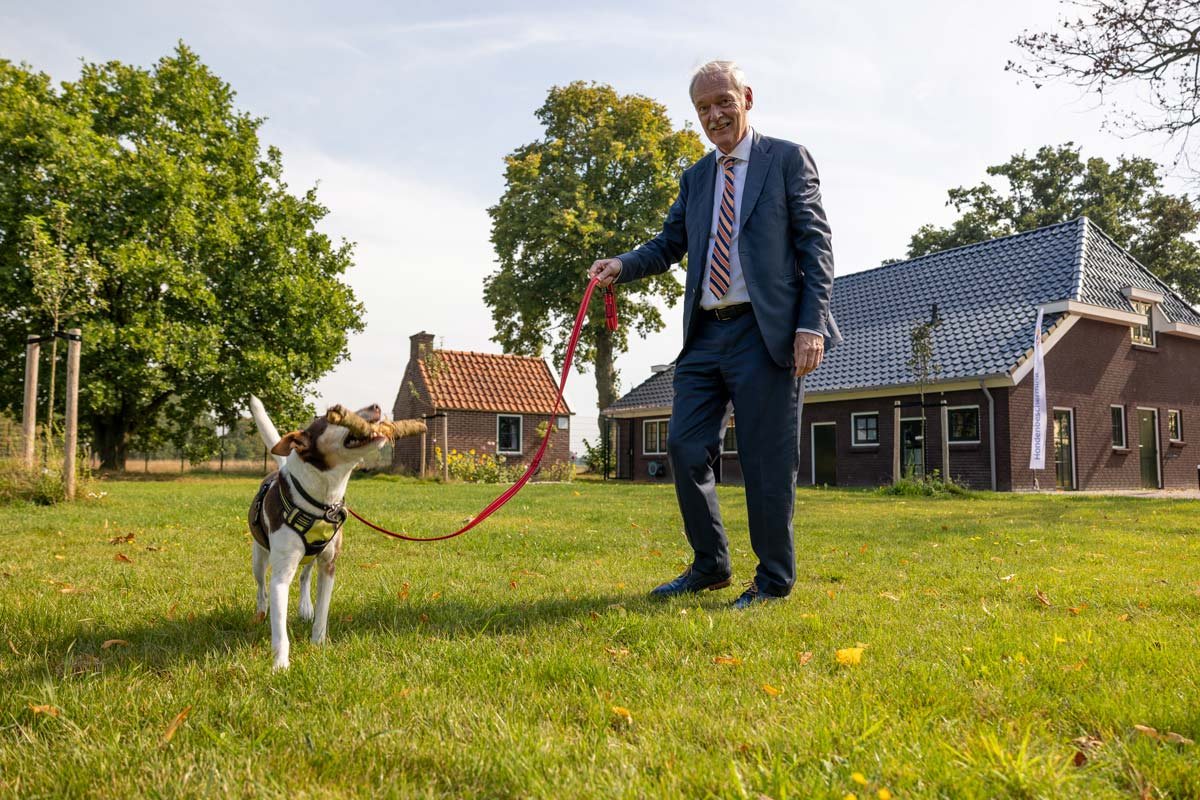Na een goed gesprek was er ook tijd en ruimte om de staatssecretaris ons Hondencentrum te laten zien waar we op een prikkelarme manier oudere en kwetsbare honden opvangen. Hij hielp zelfs nog even mee door een klein ommetje te maken met onze 11-jarige senior Sjors, die sinds het overlijden van zijn baasje in onze seniorenopvang verblijft.