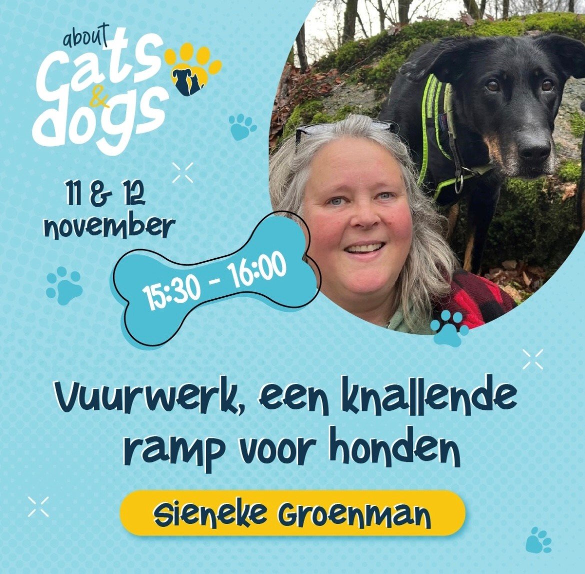 Onze collega Sieneke Groenman geeft tijdens de tweede editie van het event About Cats & Dogs twee keer een lezing over honden en vuurwerk.